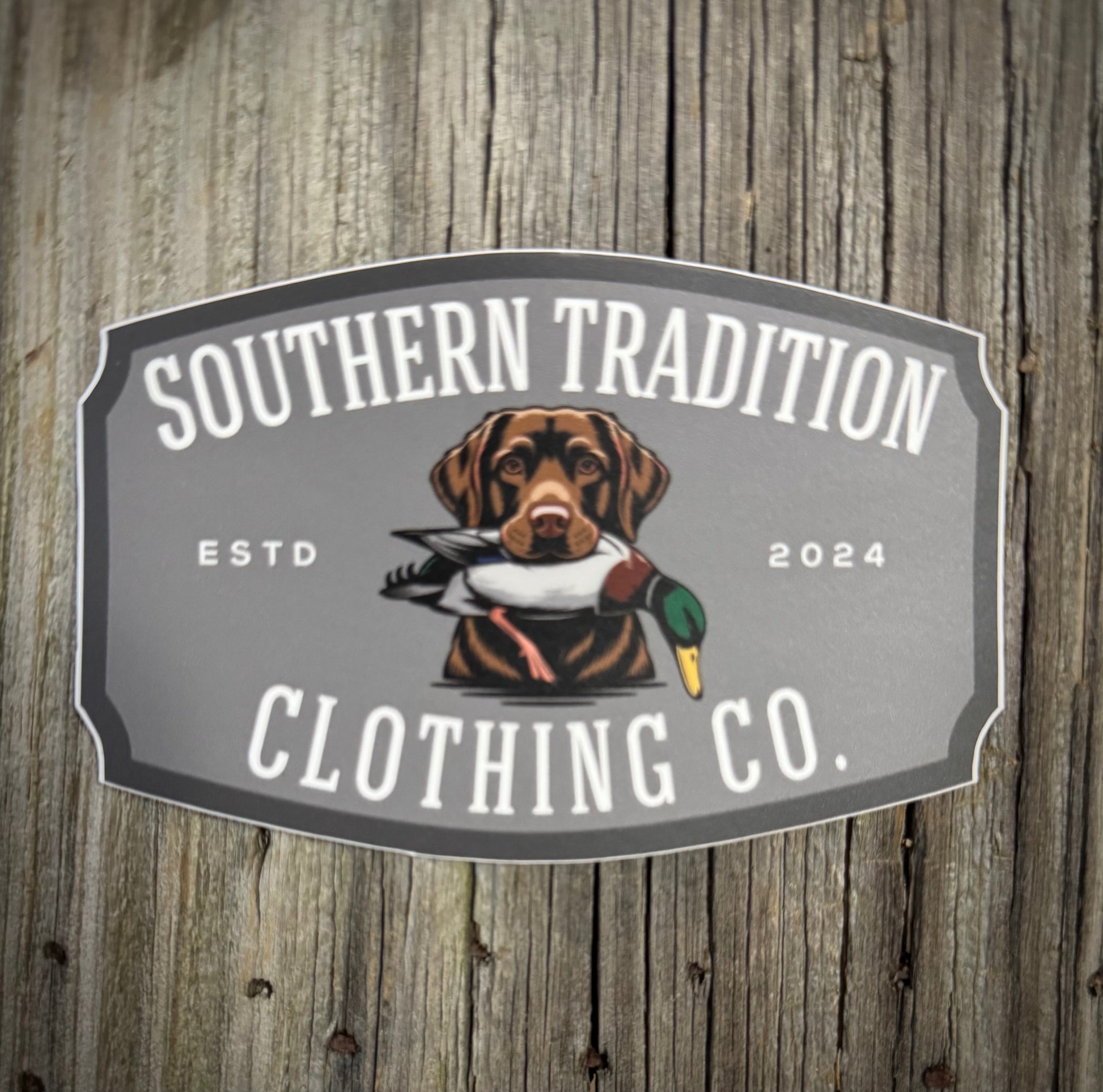 Put it anywhere to show off this beautiful Chocolate Lab & Duck decal and your support of So Trad Clothing Co. Decal is approximately 2.75” x 4”